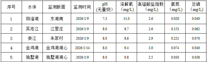 2026年1月蘇州工業(yè)園區(qū)地表水監(jiān)測結(jié)果