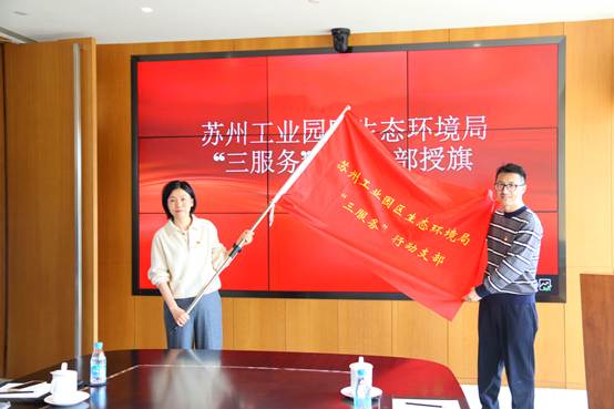 參觀結(jié)束后,活動(dòng)進(jìn)入“先鋒微課堂”分享研討環(huán)節(jié)?,F(xiàn)場(chǎng)由生態(tài)環(huán)境局黨總支代表授旗,成立“三服務(wù)”行動(dòng)支部,三位青年黨員骨干結(jié)合自身工作實(shí)際,進(jìn)行了精彩分享。