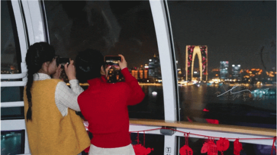 金雞湖音樂(lè)噴泉多日連映,沉浸式光影秀奏響新年序曲,帶給市民游客極致的視覺(jué)與聽(tīng)覺(jué)享受;蘇州之眼摩天輪推出魚(yú)燈巡游、國(guó)潮電音派對(duì)、機(jī)器狗拜年等趣味互動(dòng),將科技元素注入傳統(tǒng)年味,傳統(tǒng)民樂(lè)與現(xiàn)代電音碰撞融合,打造潮流年味盛宴;金雞湖右岸飛翔雕塑下,郁金香層層疊疊盛放,紅的熱烈、粉的爛漫,隨手拍都是春日畫(huà)報(bào)。眾多市民游客積極參與金雞湖春節(jié)「潮」好拍小紅書(shū)環(huán)湖打卡活動(dòng),用鏡頭記錄金雞湖沿線(xiàn)地標(biāo)的新春顏值。