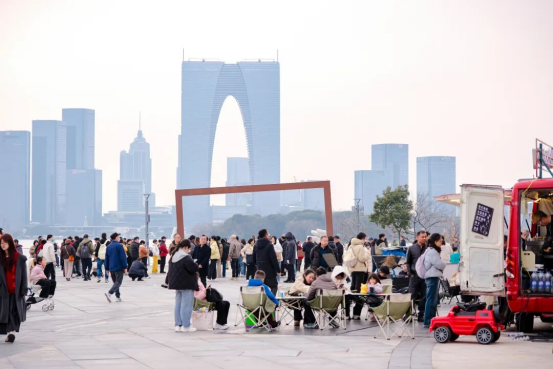 線下,商務區各大商貿載體同步發力、多點開花,蘇州中心、誠品生活、新光天地、久光百貨、金雞湖天虹等轄區商圈,精心開展新春促銷活動,推出年貨市集、新春福袋、心意贈禮等多項福利,結合非遺藝術展、年俗文化節等主題活動,營造濃厚新春消費氛圍,撬動文旅消費持續增長。