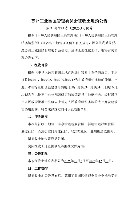 蘇工園擬征告〔2025〕010號(hào)--征收土地預(yù)公告