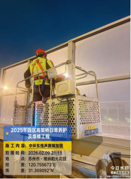 2月9日中午,園區市政服務集團工作人員在常態化設施巡查中,發現中環東線高架陽澄湖大道南向北段局部聲屏障存在松動隱患,集團當即啟動應急處置程序。從現場核查、精準定位問題、敲定整改方案,到申請夜間占道作業、深夜落地現場搶修,再到舉一反三開展拉網式排查、對全線設施完成復緊加固,這場由點及面的市政設施維護“加速跑”,全程用時36.5小時。