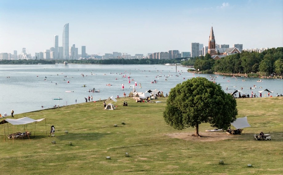 獨墅湖東岸,一棵樹營地綠意盎然。漫步湖邊,孤獨與自由、寧靜與熱烈在這里完美融合。面朝寬闊湖面和城市天際線,這里不僅是水上運動的樂園,更是露營休閑、欣賞落日的寶藏地,隨手一幀,即能定格城市的活力與浪漫。