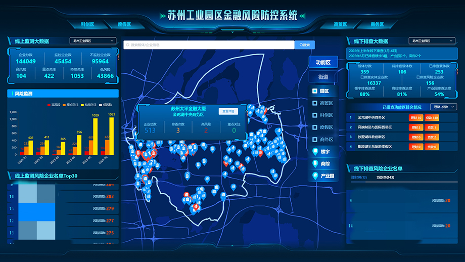 為進一步筑牢防非堅實防線,園區(qū)積極運用現(xiàn)代信息技術(shù)手段加強監(jiān)測預(yù)警。活動中,由園區(qū)金融發(fā)展和風險防范局牽頭建設(shè)的園區(qū)金融風險防控系統(tǒng)正式上線,整合工商、警情等44類數(shù)據(jù),疊加企業(yè)征信評分,運用9個維度、96個細化指標,為全區(qū)超14萬家企業(yè)進行科學(xué)賦分,進行分級分類處置。系統(tǒng)全程記錄監(jiān)測預(yù)警、研判定級、分類處置情況,構(gòu)建風險企業(yè)閉環(huán)管理模式,實現(xiàn)風險隱患一屏統(tǒng)覽、處置流程一圖掌控。