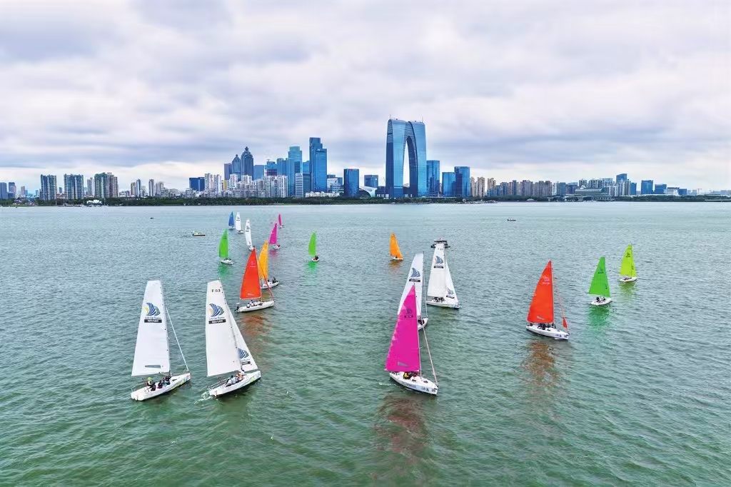 昨天,第十六屆“城際內湖杯”金雞湖帆船賽激烈進行中,湖上片片彩帆點綴,各參賽隊趁風揚帆。