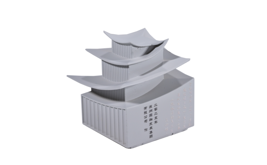 在作品創作環節,3D打印、機器刻制、彩色噴繪等新技術得到廣泛應用,推動藝術表達實現新突破。蘇州圓融發展集團創作的《當代美術館》印章,通過提取建筑核心結構造型,運用3D打印技術精準還原,素白色調既呼應蘇州“粉墻黛瓦”的傳統意蘊,又凸顯現代建筑的線條美感,實現了傳統形制與科技精度的巧妙融合。創作者代表曹余露分享道:“創作過程中我們的模型經過了反復的修改,就是為了既能體現建筑的飛揚氣勢,又保留篆刻藝術的韻味。”正是這種精益求精的創作態度與先進技術的結合,讓傳統藝術在當代煥發出新的生命力。