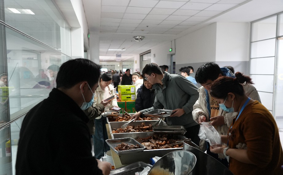 活動現場暖意融融、熱鬧非凡,處處洋溢著喜慶祥和的新春氛圍。上午10點半,市集剛一開市,就吸引了大批職工前來打卡選購,歡聲笑語此起彼伏,各個攤位前都排起了長長的隊伍,熱鬧勁兒十足。非遺民俗體驗區成為現場的“網紅打卡點”,糖畫、拓印、寫春聯等攤位前圍滿了好奇又熱情的職工。糖畫藝人手持融化的糖漿,手腕輕轉,靈動可愛的生肖圖案便躍然眼前,金黃透亮的糖畫散發著甜香,引得職工們頻頻駐足;拓印攤位前,職工們親手拿起工具拓印,在動手體驗中感受傳統文化的魅力;書法家揮毫潑墨、筆走龍蛇,職工們爭相定制專屬春聯,一副副筆力遒勁、寓意美好的春聯和福字,承載著新春的祝福。另一邊的商品采購區同樣火爆,鴨貨、水果、茶葉、商超百貨,各色商品琳瑯滿目,不少職工手里提著滿滿當當的購物袋,臉上掛著滿足的笑容,步履輕快地穿梭在各個攤位之間,收獲著新春的驚喜與暖意。