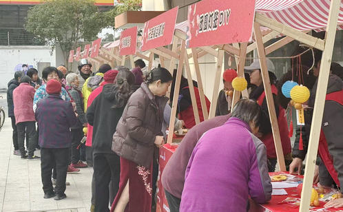 與室內(nèi)戲曲的靜雅相呼應(yīng),戶外廣場上的元旦主題文化市集則是一片熱鬧歡騰的景象。市集緊扣“團(tuán)圓、祈福、迎新”主題,設(shè)置了多個兼具文化韻味與互動趣味的攤位。“元旦福運(yùn)剪紙坊”和“團(tuán)圓燈籠DIY攤”前,居民們親手剪出福字窗花、制作紅火燈籠,將新年祝福融入手工作品;“吉祥香囊手作”攤飄散著淡淡藥草香,寄托著人們對健康平安的祈愿;“傳統(tǒng)冰糖葫蘆鋪”與“暖心湯圓驛站”更是人氣十足,酸甜的冰糖葫蘆勾起童年記憶,一碗碗熱騰騰的免費(fèi)湯圓,溫暖了居民特別是老年人與外賣員、保潔員等新業(yè)態(tài)從業(yè)者的胃,更溫暖了他們的心。“元旦猜謎互動攤”則傳來陣陣歡聲笑語,居民在趣味競猜中增長了傳統(tǒng)文化知識。各攤位內(nèi)外聯(lián)動,共同構(gòu)成了一個充滿煙火氣與人情味的節(jié)慶空間。