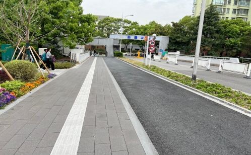 在明確改造方向后,社區(qū)黨委聯(lián)合市政部門、專業(yè)團(tuán)隊(duì)開展技術(shù)論證,邀請黨員、居民代表、物業(yè)公司共同參與。針對北門人車混行的問題,實(shí)行行人和非機(jī)動(dòng)車分流,人行道采用防滑PC磚,非機(jī)動(dòng)車道鋪設(shè)瀝青路面,同步增設(shè)盲道,保障各類群體通行安全與便利。方案還注重融入社區(qū)人文元素,在通道側(cè)設(shè)置“小區(qū)暖心地圖”,方便進(jìn)入小區(qū)的訪客、快遞員等快速定位樓棟,使通道在通行功能之外,也成為社區(qū)文化的展示窗口。