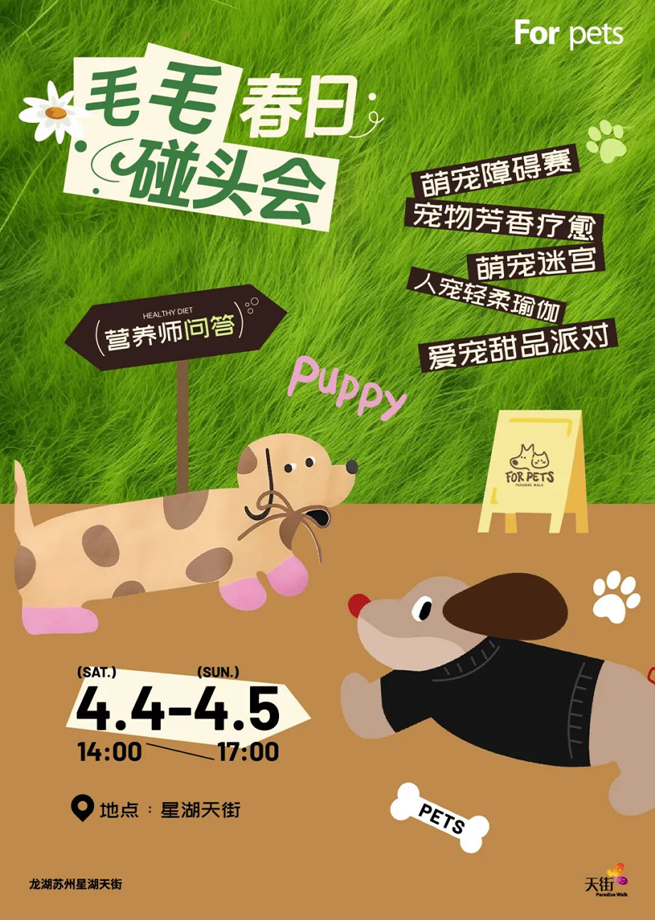 4月4日—6日,星湖天街·萌寵踏青周正式啟動(dòng)。讓寵物友好融入生活方方面面,和毛孩子一起感受春天。春日市集、萌寵市集、puppy野餐會(huì)、寵物領(lǐng)養(yǎng)、青團(tuán)DIY、美食試吃會(huì)……星湖天街準(zhǔn)備了豐富活動(dòng),等你來(lái)體驗(yàn)。