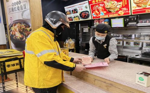 時代廣場北社區的暖心服務讓外賣小哥深受觸動,他們主動化身社區治理志愿者,以實際行動反哺社區。社區工作人員向外賣小哥講解了禁燃禁放政策和宣傳重點之后,小哥們充分發揮自己走街串巷的優勢,協助社區進行禁燃禁放宣傳,向居民、商戶普及安全知識。在新春到來之際,時代廣場北社區向鄰里黨建共同體成員單位太平產業投資管理有限公司第十三支部送上感謝信,不僅感謝了他們這一年來對社區工作的大力支持,也代表廣大外賣小哥致謝大廈設立“星騎士加油站”,為他們提供休息、補水、充電等貼心服務。從被關懷者變為參與者,外賣小哥用責任與擔當,為社區治理添磚加瓦。
