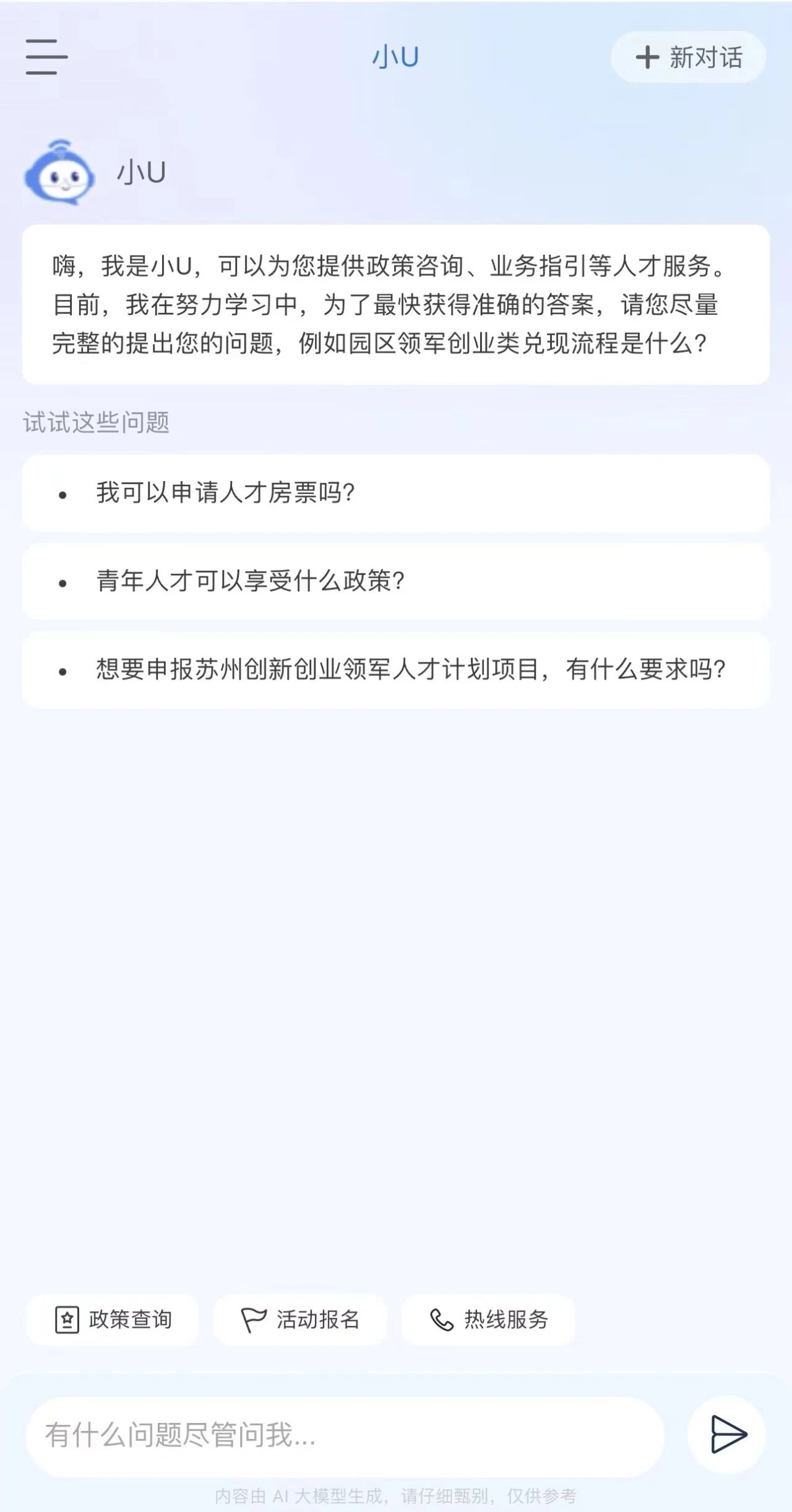 自2025年上線以來,“小U”已累計提供對話服務(wù)6107次,平臺瀏覽量達8.2萬次,服務(wù)訪客超2萬人,構(gòu)建起“政策秒配、服務(wù)無界”的智能化人才服務(wù)體系。
