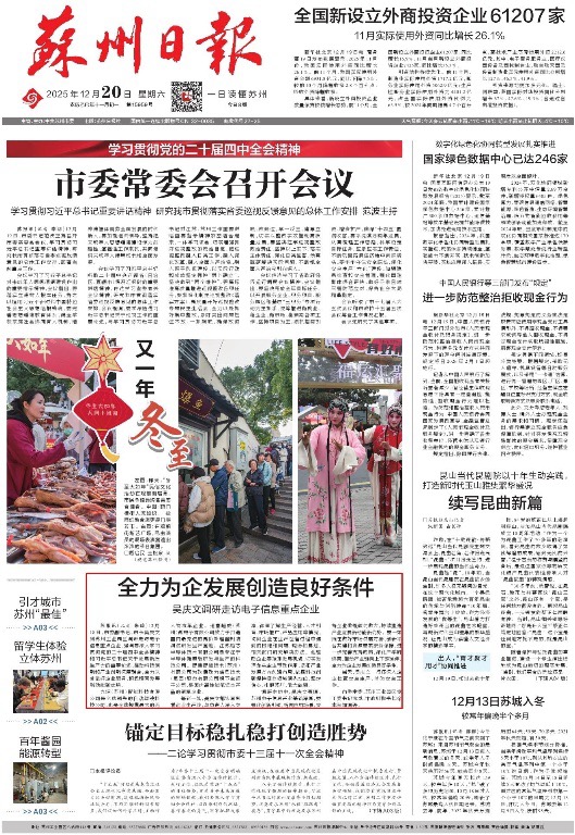 《蘇州日?qǐng)?bào)》2025年12月20日A01版