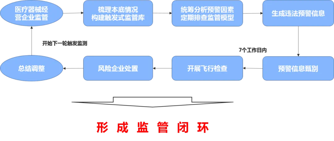 根據(jù)產(chǎn)業(yè)發(fā)展和監(jiān)管實(shí)際,按照“風(fēng)險(xiǎn)導(dǎo)向”原則,將觸發(fā)式監(jiān)管對(duì)象定位為主體數(shù)量多、監(jiān)管任務(wù)重的醫(yī)療器械經(jīng)營企業(yè);重點(diǎn)聚焦年內(nèi)新備案的第二類醫(yī)療器械經(jīng)營企業(yè),設(shè)置預(yù)警因素、建立監(jiān)管流程、明確處置方式,通過觸發(fā)式監(jiān)管降低風(fēng)險(xiǎn)隱患,引導(dǎo)企業(yè)合法合規(guī)經(jīng)營。