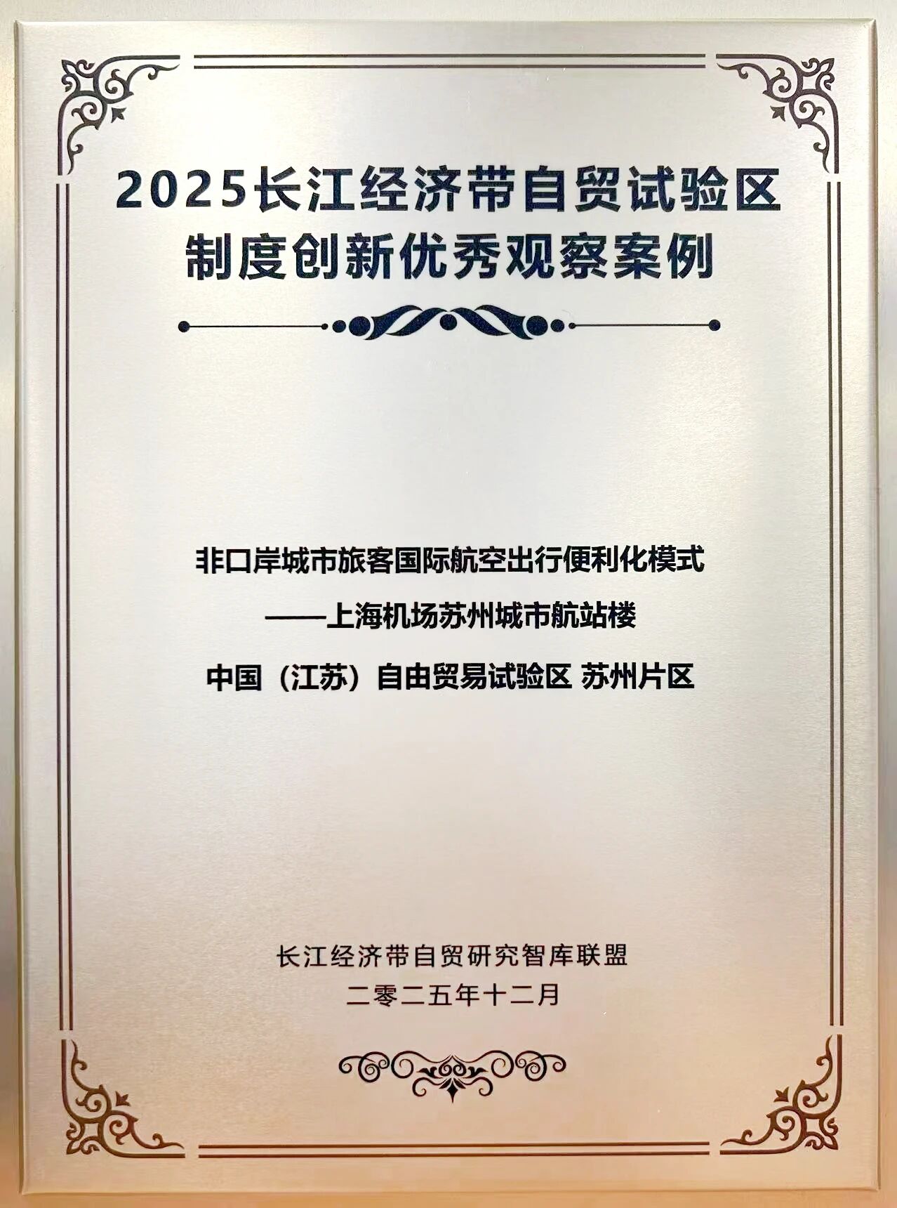 近日,“2025長江經濟帶自貿試驗區制度創新優秀觀察案例”12項獲評案例公布,中國(江蘇)自由貿易試驗區蘇州片區的“非口岸城市旅客國際航空出行便利化模式——上海機場蘇州城市航站樓”榜上有名。