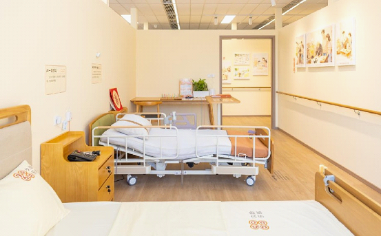 Inside, themed exhibition zones showcase technological advancements in elderly care, with immersive mock-ups of living spaces such as bedrooms and bathrooms highlighting age-friendly designs and smart assistive devices.
