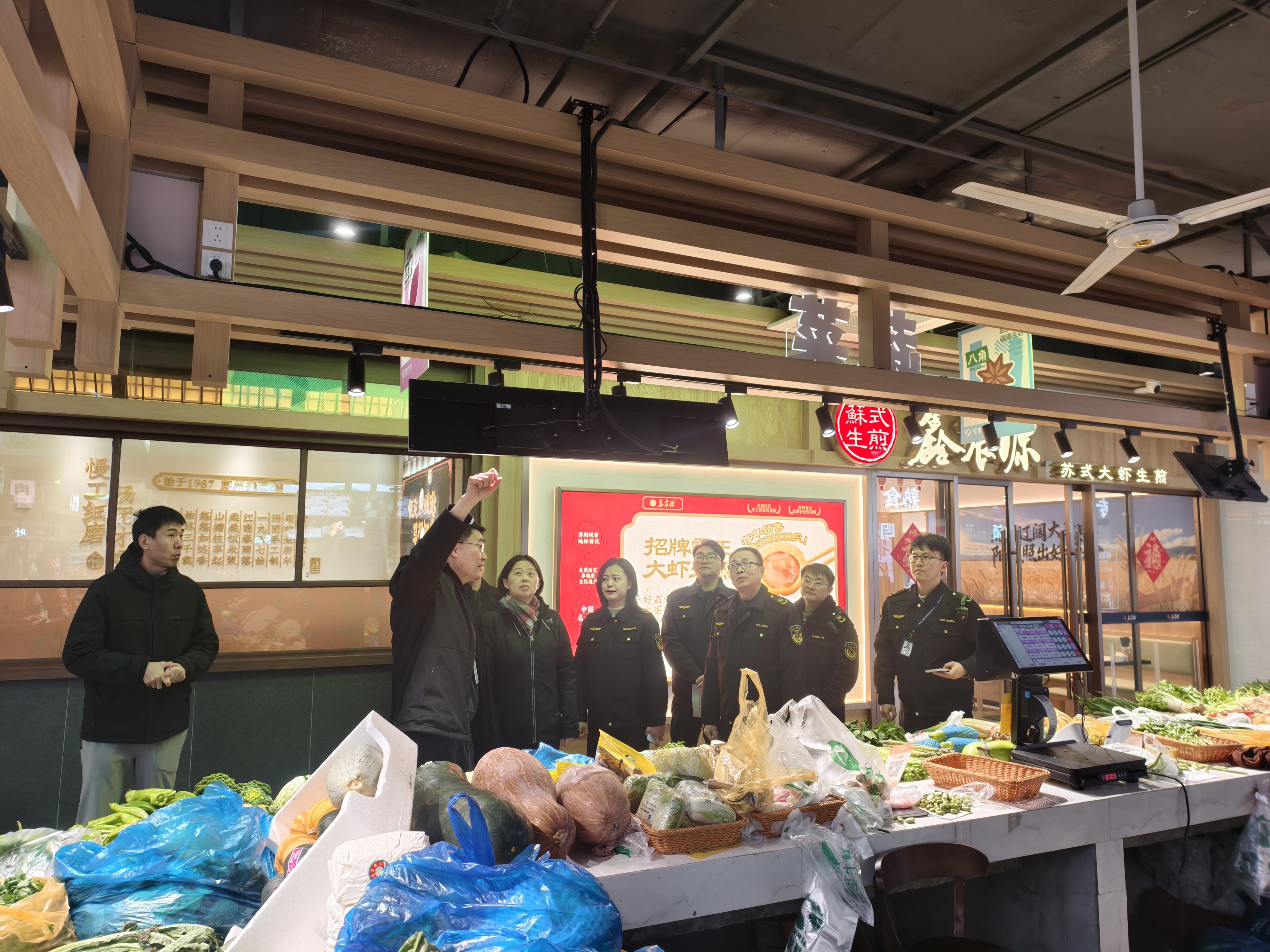 勝浦鄰里中心是轄區內新開業的大型商業綜合體,業態多樣,并設有鄰里生鮮菜場,節日期間人員密集。檢查組重點查看商超、農貿市場、酒店年夜飯等場所明碼標價、貨簽對位執行情況,嚴查價格欺詐、虛假折扣、變相漲價等違法行為,提醒商家合理定價、誠信經營;全面排查在用電梯、自動扶梯等特種設備,重點核查設備標識張貼、日常巡檢、維護保養等落實情況,測試緊急通話裝置是否可靠;深入餐飲店廚房操作間、食品倉庫等關鍵區域,就進貨查驗記錄、檢驗記錄、從業人員健康證以及個人衛生防護、設施設備的運轉等情況進行檢查,提醒餐飲單位負責人完善食品安全制度和人員健康管理制度,切實保障餐飲安全。