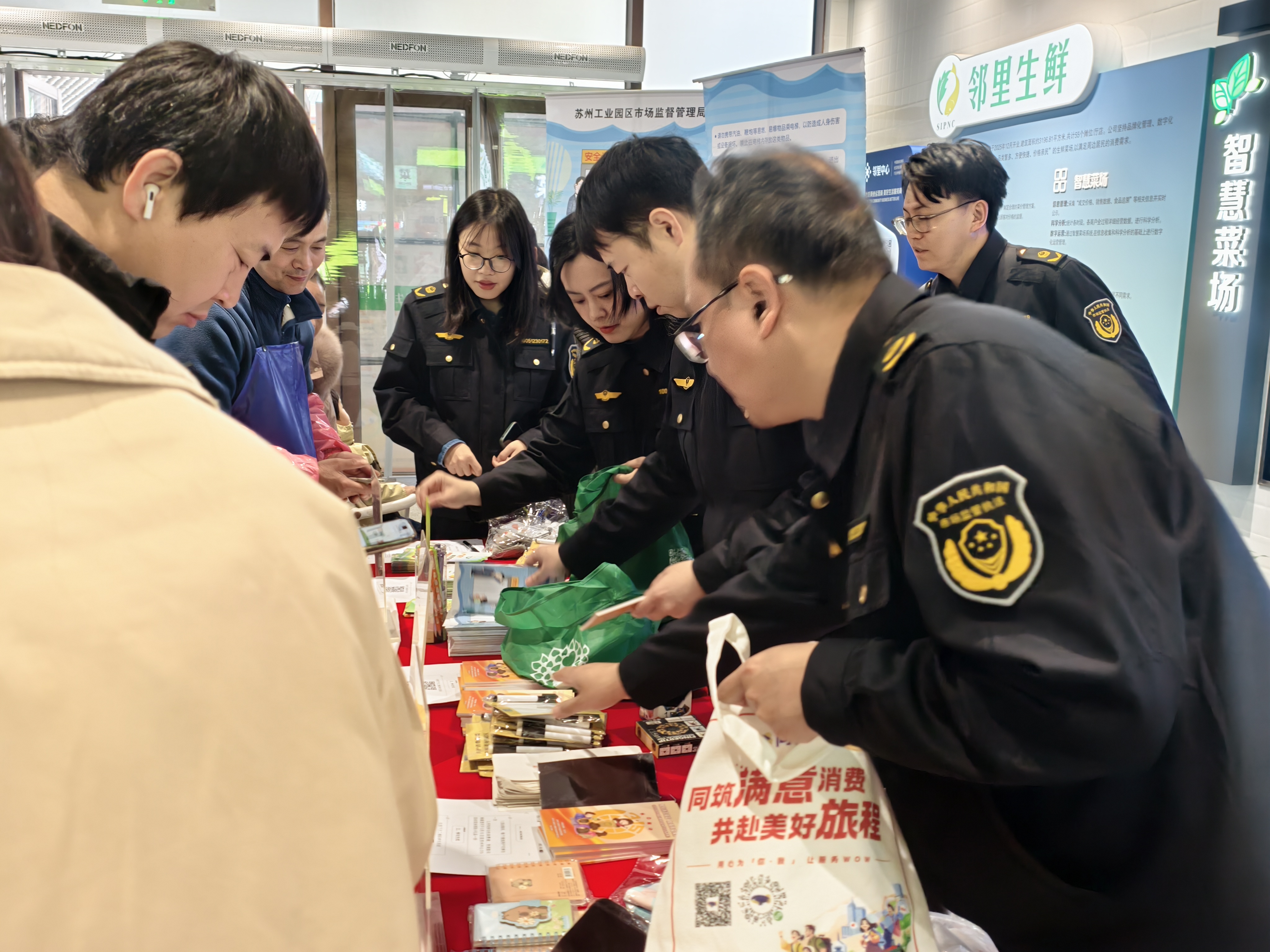 為切實提升群眾消費維權意識,守護百姓“錢袋子”,蘇州工業園區市場監督管理局高端制造與國際貿易區分局在勝浦鄰里中心設立宣傳咨詢點,以接地氣的“擺攤”形式,開展消費者權益保護宣傳活動。活動現場熱鬧非凡,工作人員熱情接待每一位前來咨詢的市民,免費發放消費維權宣傳單、手冊,講解常見消費陷阱、假貨辨別技巧、投訴舉報流程等實用知識。