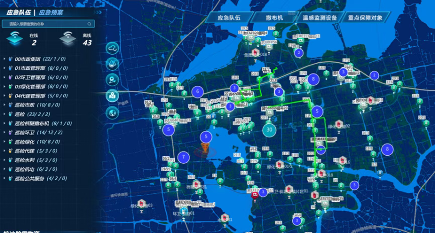 本次演練依托“感知-傳輸-分析-應用”的閉環管理機制,全程檢驗了智能調度平臺的核心功能。智能調度平臺與監測預警體系深度融合,可實現預警信息自動推送、作業路線智能規劃、應急資源動態顯示等多重功能。指揮人員通過調度平臺實時掌握撒布車輛作業軌跡,及時調度備用車輛補位,確保融雪劑精準、高效撒布,顯著提升了應急處置的協同性和精準度。
