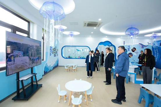調(diào)研組首先來(lái)到時(shí)代上城南社區(qū)聽(tīng)取兒童友好社區(qū)工作情況匯報(bào)。時(shí)代上城南社區(qū)通過(guò)打造“時(shí)上少兒成長(zhǎng)站”兒童參與式的友好服務(wù)陣地,圍繞“童育、童護(hù)、童益、童樂(lè)、童享”五大主題開(kāi)展特色活動(dòng),護(hù)航未成年人全面發(fā)展。在參觀“時(shí)代上城南兒童友好海洋保護(hù)科普館”時(shí),調(diào)研組對(duì)街道圍繞兒童實(shí)際需求,開(kāi)展系列服務(wù)活動(dòng)表示充分肯定,指出相關(guān)舉措有效優(yōu)化了兒童成長(zhǎng)環(huán)境,切實(shí)保障兒童權(quán)益,體現(xiàn)了街道在社區(qū)治理中的溫度與創(chuàng)新。